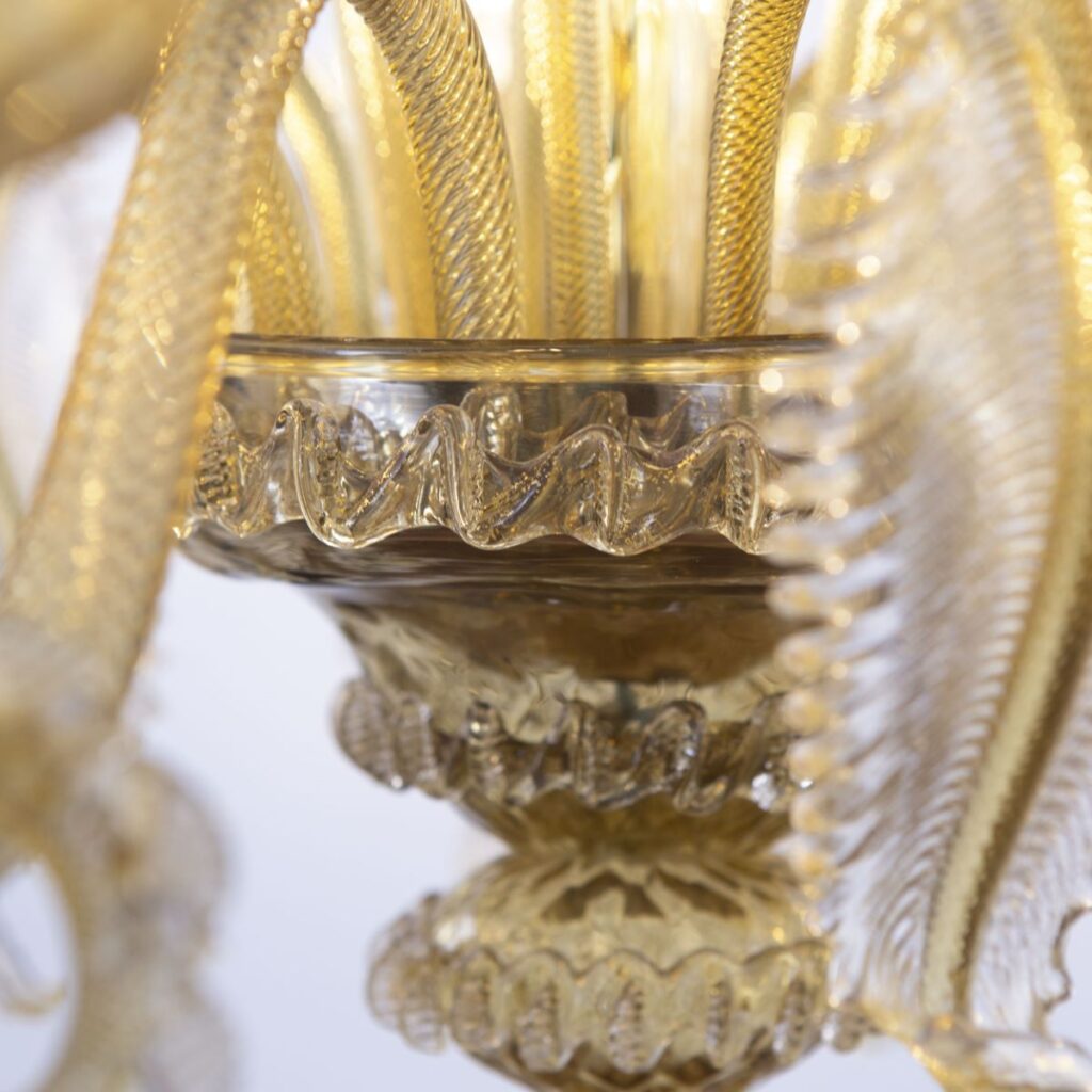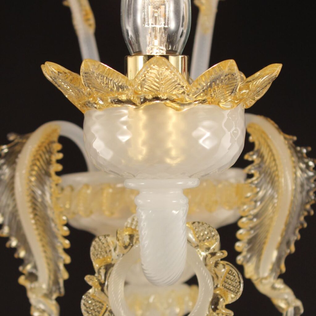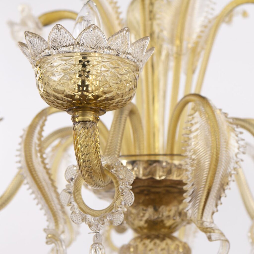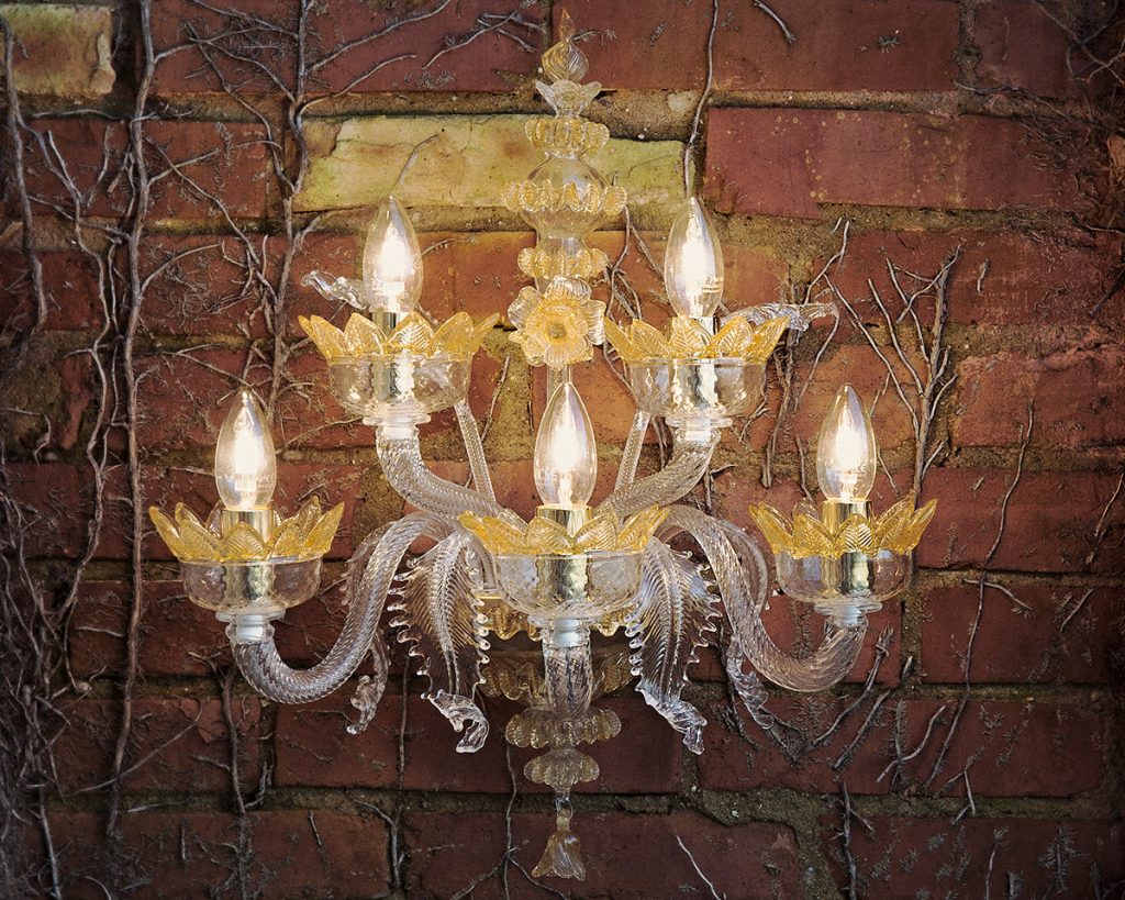 The V-Classic collection is a combination of elements, structures and shapes which are those typical of the venetian and Murano tradition. The structure is embellished by flowers, leaves, crests and “morrise” (a wavy decoration); the whole structure is something majestic, characterized by refined transparencies and delicate colours. The perfect solution to decorate elegant and valued spaces.
