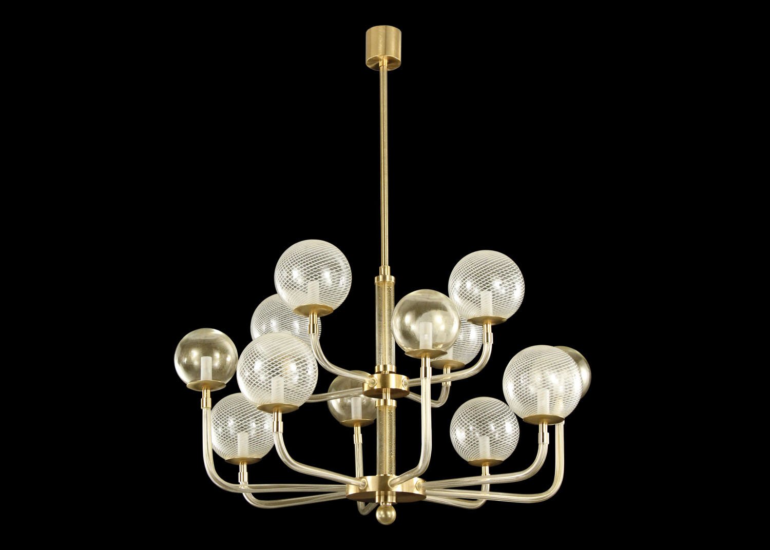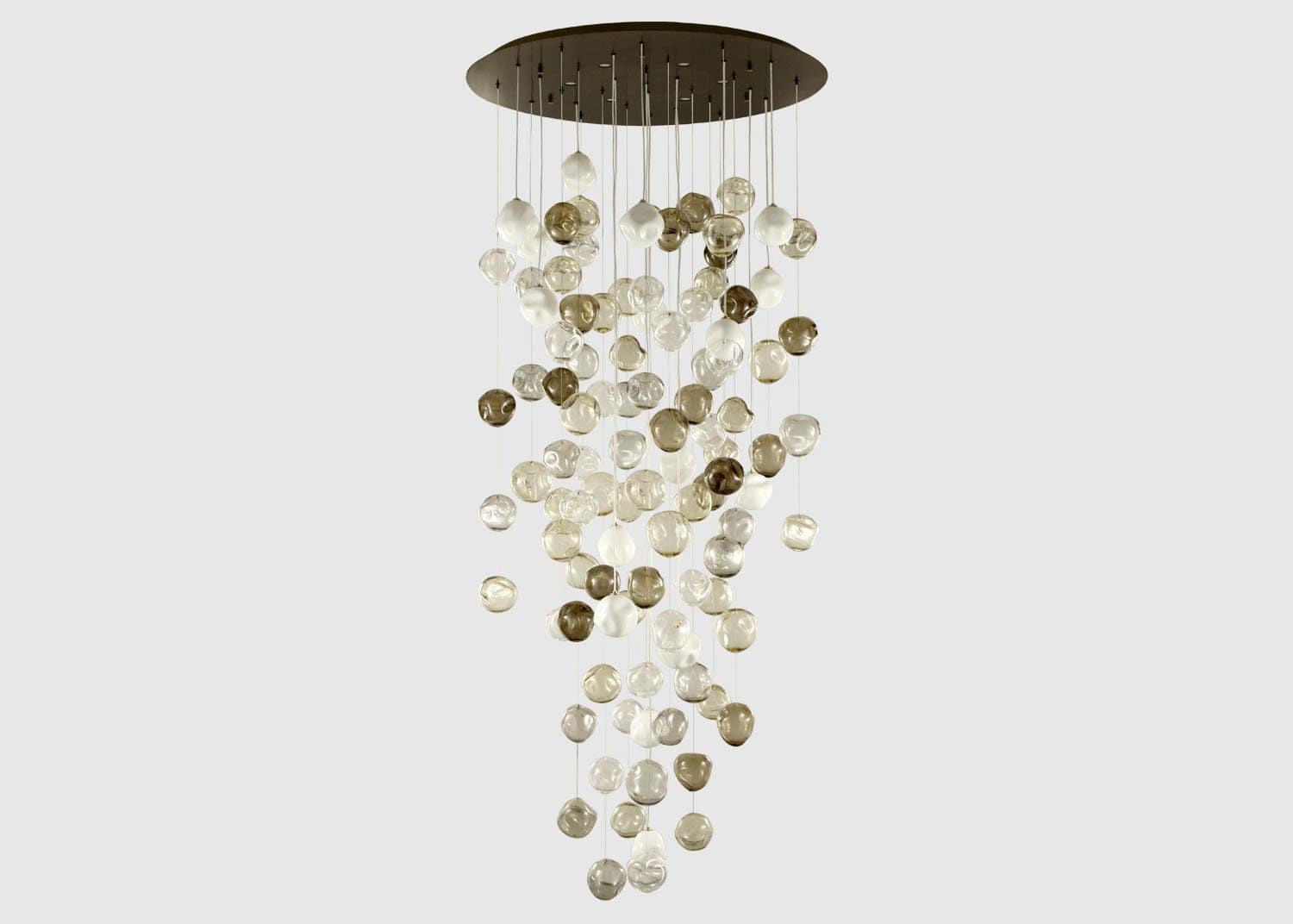In altre collezioni, invece, come ad esempio in Tribeca, accanto a una nuova architettura del lampadario sono state sviluppate anche nuove tonalità di colore, tanto per la parte vitrea che per quella metallica. Una nuova architettura a partire da quella del lampadario classico in stile Murano è stata proposta anche per Dadaumpa: la struttura inedita, dinamica ed espressiva, è tutta giocata su elementi ondeggianti e sfere in vetro soffiato realizzate con estrema maestria.