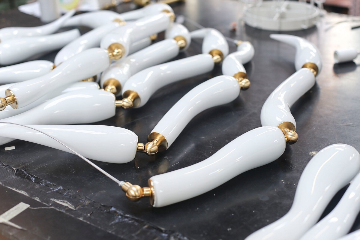 LOB nasce da un progetto di Leo de Carlo e trova forma grazie al know-how di Multiforme. Ne sono state realizzate due versioni: una in vetro soffiato bianco, dall’aspetto più lussuoso ed elegante, e una in vetro laccato nero opaco, che evoca suggestioni più disturbanti ma al tempo stesso affascinanti.