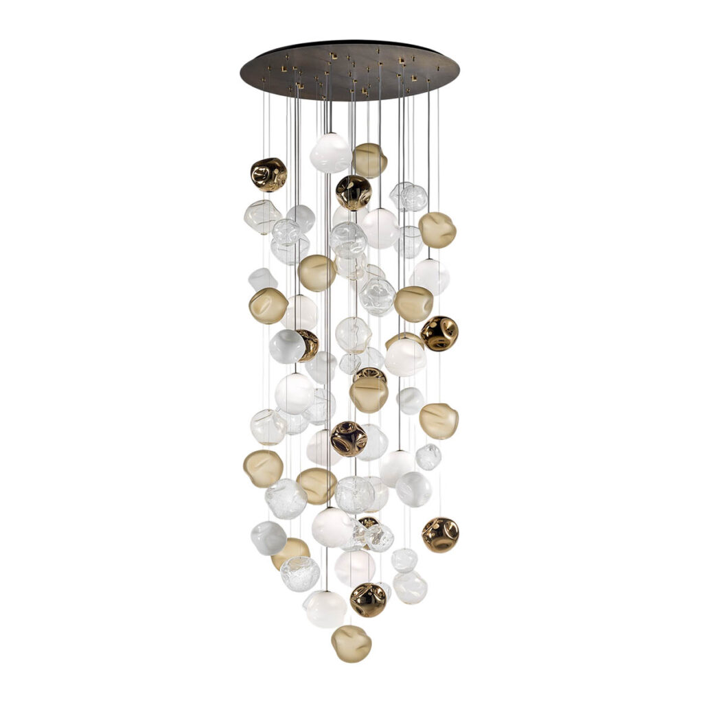 Поэзия стекла, проникающая в эти декотивные подвесные элементы, свидетельствует о неподвластной времени красоте итальянского мастерства. Множество жестов, бесконечные формы. Модульность тонко обработанных стеклянных элементов позволяет фантазии дизайнеров создавать ключевые элементы в многочисленных вариантах, оригинальных и уникальных в своем роде.