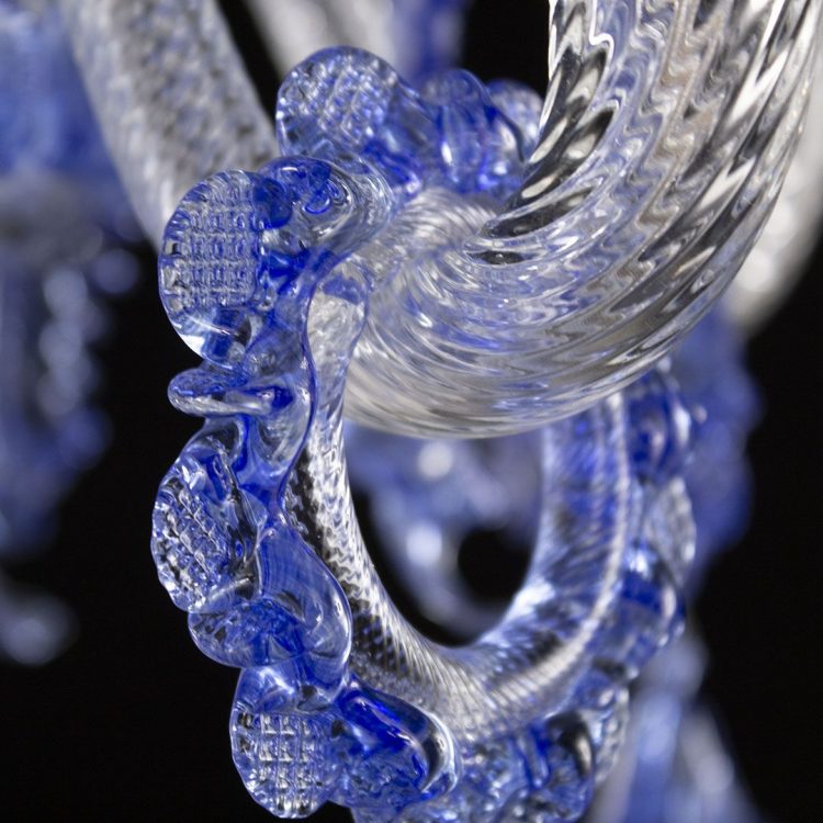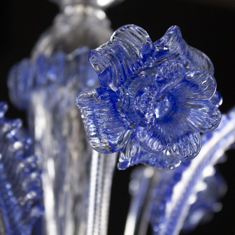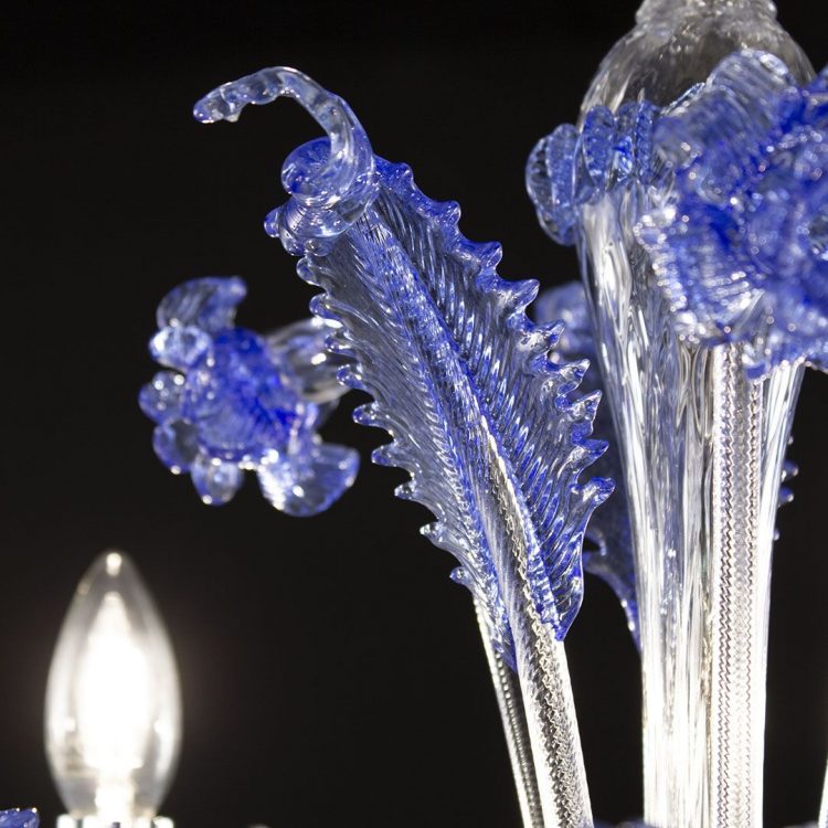 Люстра на 5 рожков,в венецианском стиле, дутое стекло прозрачного и голубого цвета.