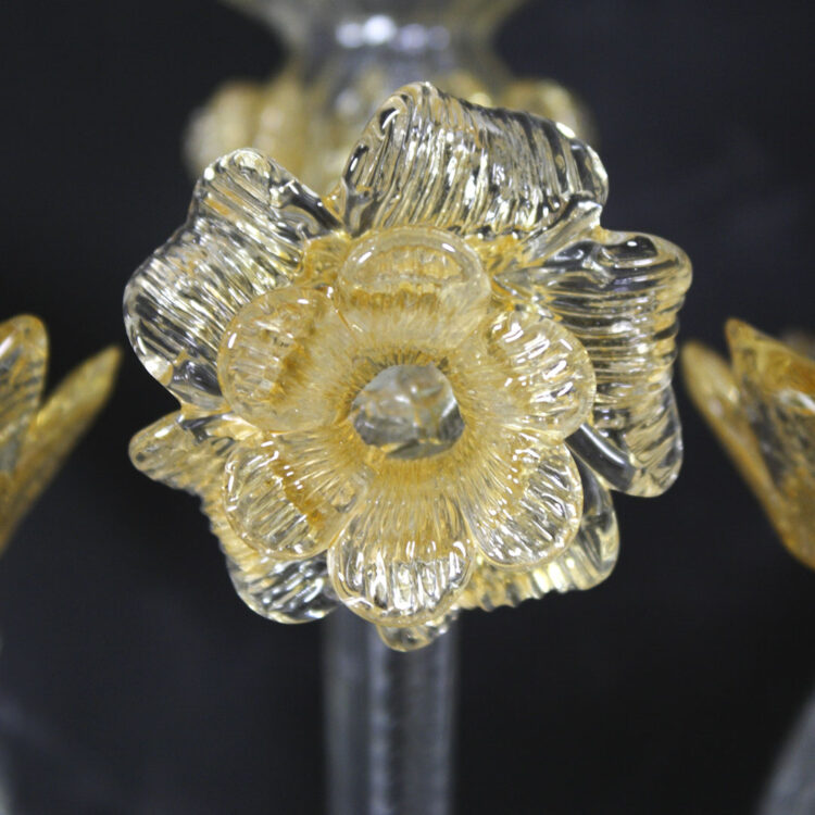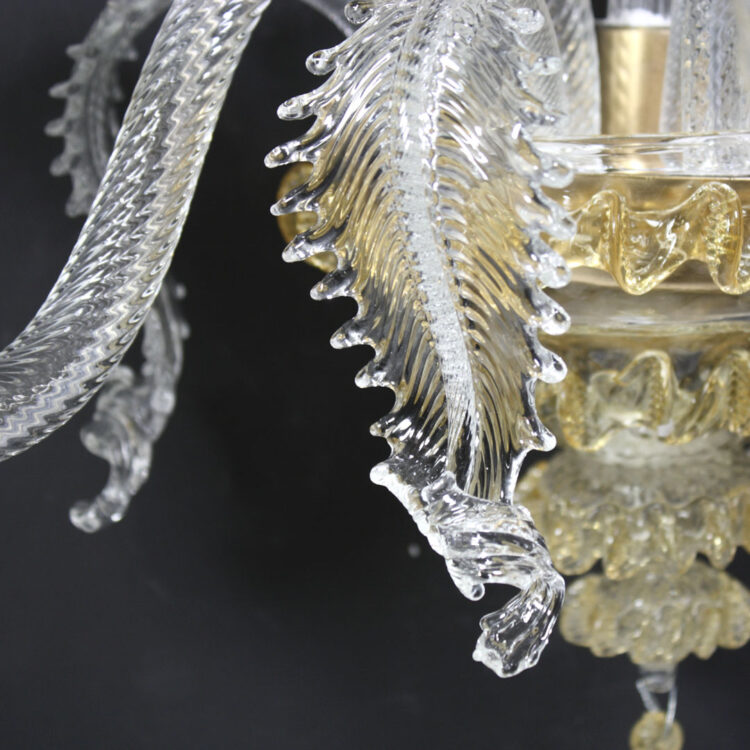 Настенный светильник на 3+2 рожка, дутое стекло прозрачного и янтарного цвета.